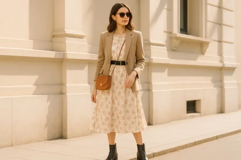 When picking accessories, go for items that enhance the dress without stealing the spotlight. For instance, a vintage floral dress works beautifully with a structured blazer or chunky sneakers, creating a chic, updated vibe. The trick is to play with contrasts while keeping the outfit polished and put-together.
